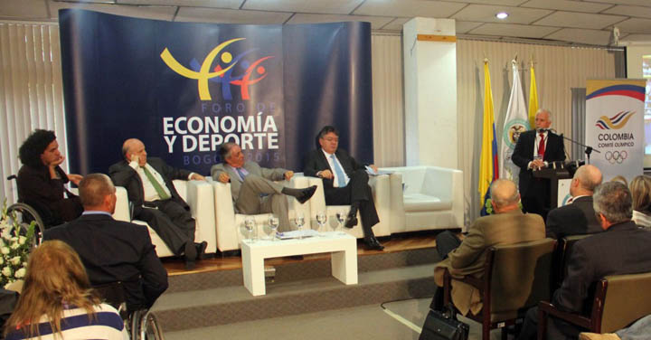 Este jueves, 12 de marzo, se llevó a cabo en el auditorio de Coldeportes, el Foro Economía y Deporte, encuentro presidido por el Ministro de Hacienda y Crédito Público, Mauricio Cárdenas Santamaría, quien compartió la mesa principal con Baltazar Medina, presidente del Comité Olímpico Colombiano; Juan Pablo Salazar, presidente del Comité Paralímpico Colombiano; Andrés Botero, director de Coldeportes, y Antonio José Ardila, miembro del Consejo Nacional del Deporte.