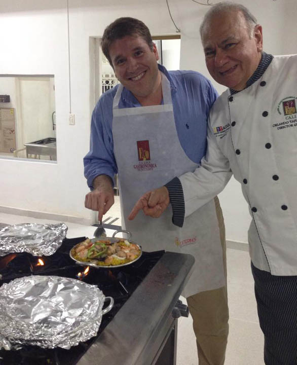 En plena actividad gastronómica se le vio a Juan Esteban Ángel, en estos días, haciendo gala de su talento culinario y acompañado por Orlando Tafur, el hombre fuerte de la Escuela Gastronómica de Occidente.