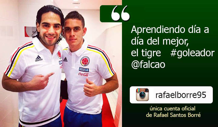 Muy orgulloso se vio al delantero verdiblanco Santos Borré posando junto a Radamel Falcao García en la convocatoria de la selección Colombia. Ellos tienen muchas cosas en común, pues son costeños, delanteros con olfato y están siendo protagonistas del relevo generación del equipo dirigido por José Pekerman. Nos dicen desde Bahréin que Falcao ya se lo recomendó al Mónaco y que a Santos, es más bien poco el tiempo que le queda en el Deportivo Cali, pues además necesitan un trasferencia millonaria para junio.
