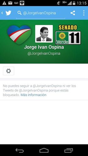 “Esta es la democracia del Senador Jorge Iván Ospina. Podrá bloquearme en sus redes, pero mi voz seguirá siempre firme en mis convicciones”