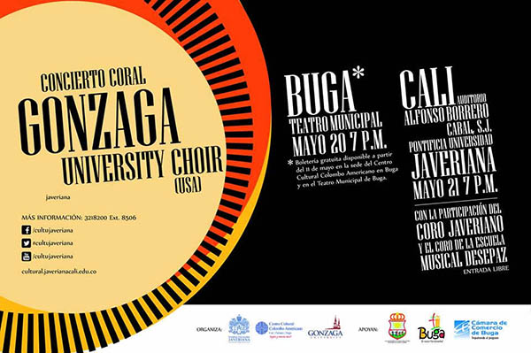 Del 17 al 24 de mayo, el Coro de la Universidad Gonzaga estará en Colombia para ofrecer su variado repertorio en dos grandes conciertos y vivir una experiencia a través de diferentes actividades de intercambio cultural.