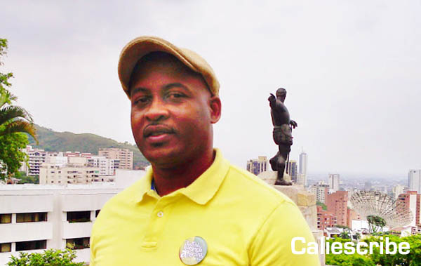 Fotografía James Biuza,director del Festival de Herencia Africana Cali 2015 en la Estatua de Sebastián de Belalcazar.