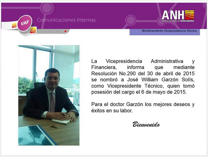 En las comunicaciones internas de la Agencia Nacional de Hidrocarburos, ya se vio la fotografía del floridano José William Garzón, estrenando cargo. Y es que tras su salida en falso como precandidato liberal a la Alcaldía de Cali, este experto medioambiental al ver que su nombre no “pegó”, renuncio y se fue rapidito a Bogotá a asegurar su chanfa. Buena suerte doctor Garzón y creemos que mejor siga por otras fauces en donde seguramente brillará.